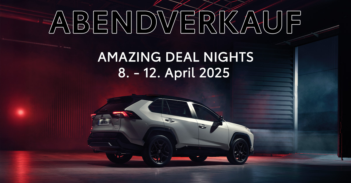 Wir wissen, wie wertvoll Ihre Zeit ist, darum haben wir die Öffnungszeiten während der AMAZING DEAL NIGHTS für Sie verlängert. So haben Sie genug Zeit, sich in Ruhe beraten zu lassen und Ihr Wunschfahrzeug zu entdecken.