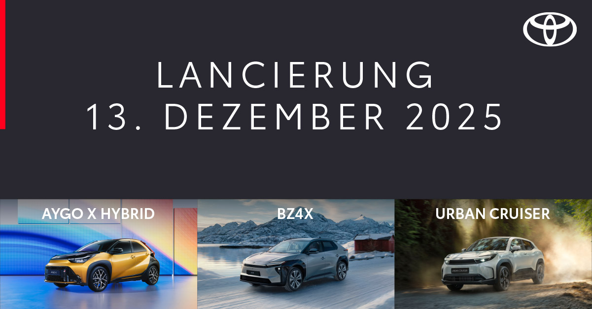 Am 13. Dezember laden wir Sie zur Lancierung von gleich drei brandneuen Toyota Modellen ein. Elektropower trifft auf Alltagstauglichkeit. Design auf Effizienz. Und Frühentschlossene profitieren doppelt.